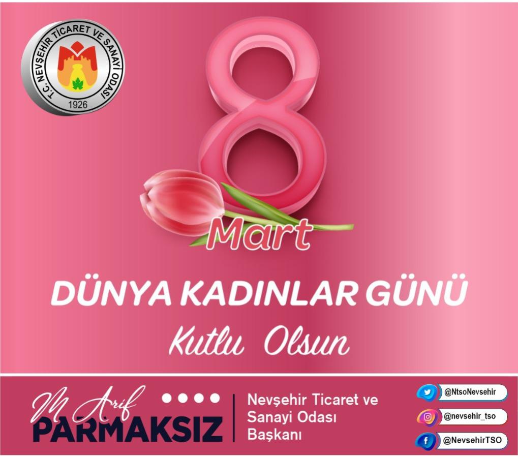Nevşehir Ticaret ve Sanayi Odası Yönetim Kurulu Başkanı M. Arif Parmaksız, 8 Mart Dünya Kadınlar Günü nedeni ile yayımladığı mesajında “Geleceğimizi şekillendiren kadınlarımıza ne kadar değer versek az” dedi.
