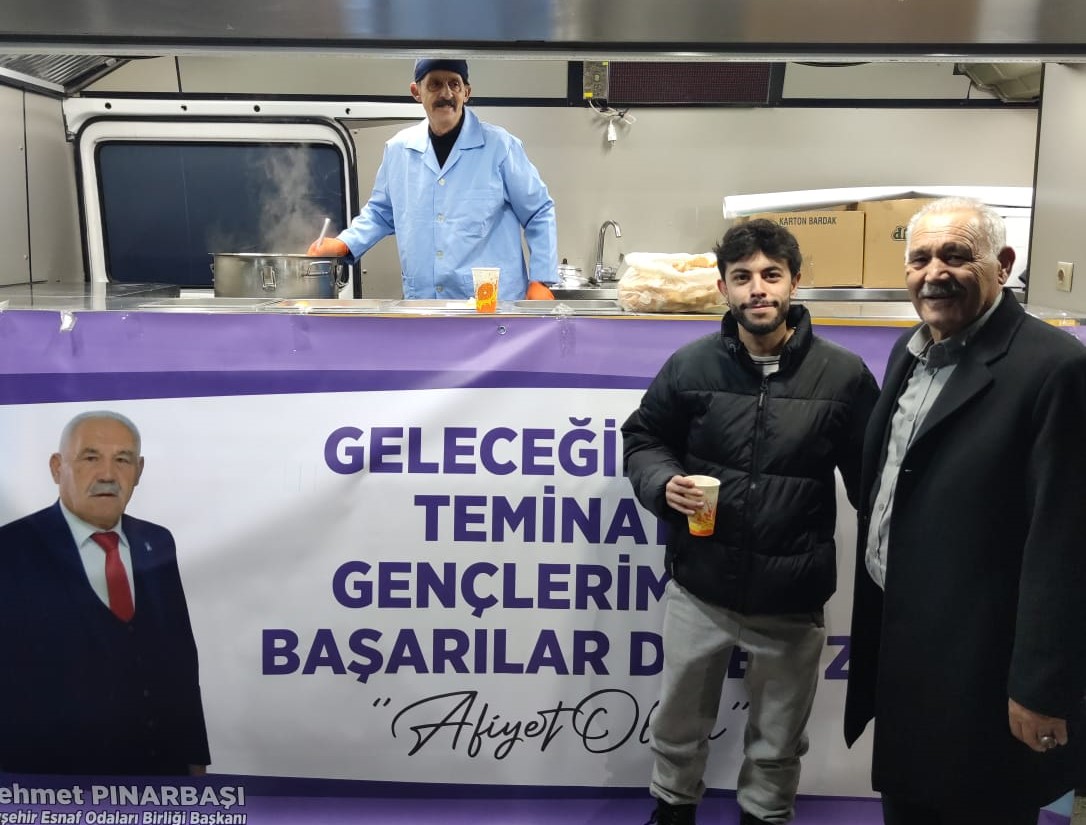 Nevşehir Esnaf ve Sanatkarlar Odaları Birliği Başkanı Mehmet Pınarbaşı, Nevşehir Hacıbektaş Veli Üniversitesi Damat İbrahim Paşa Yerleşkesinde yer alan Hoca Ahmed Yesevi Kütüphanesi önünde mobil araç ile final sınavları haftasında gece geç saatlere kadar ders çalışan öğrencilere çorba ikramında bulundu.