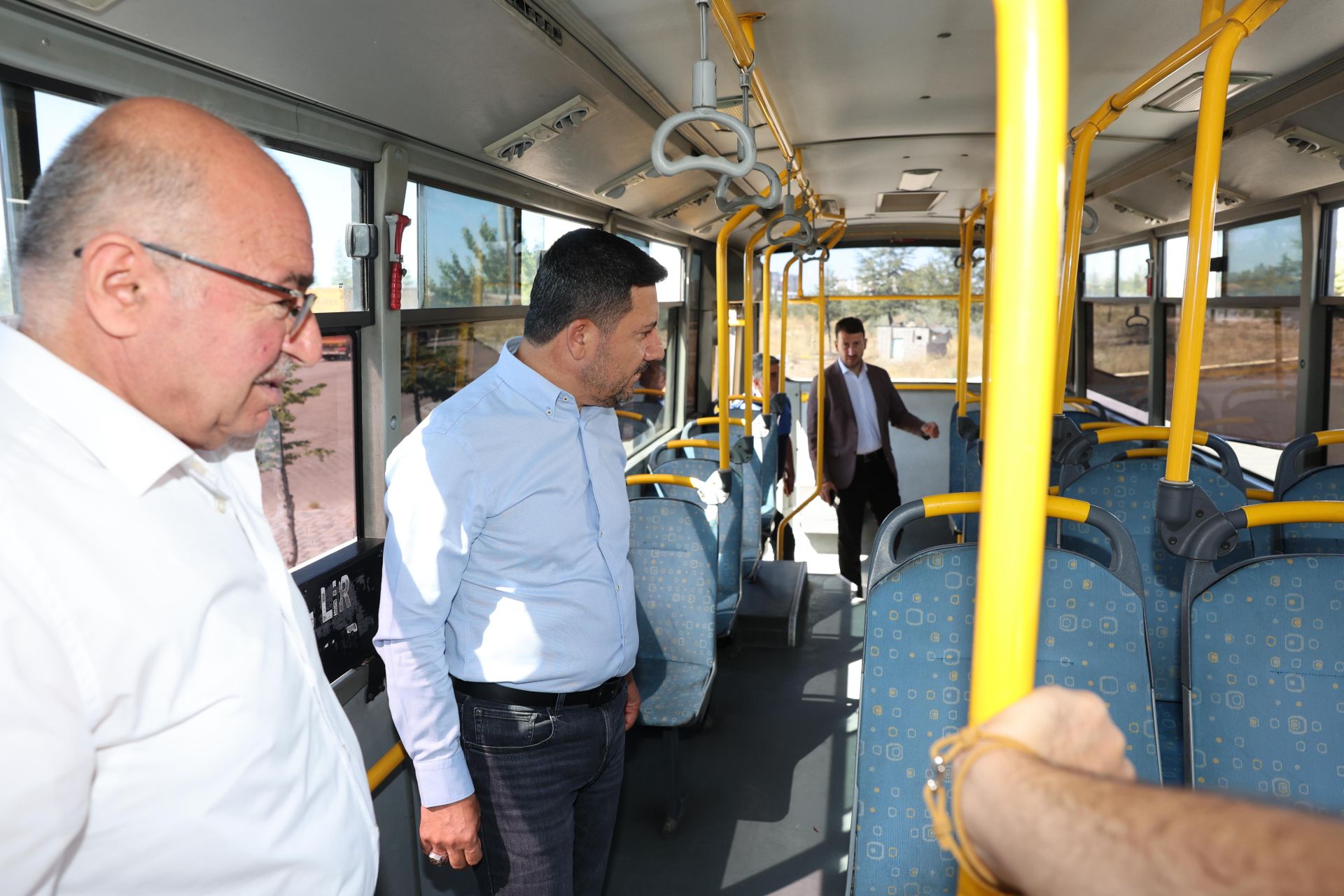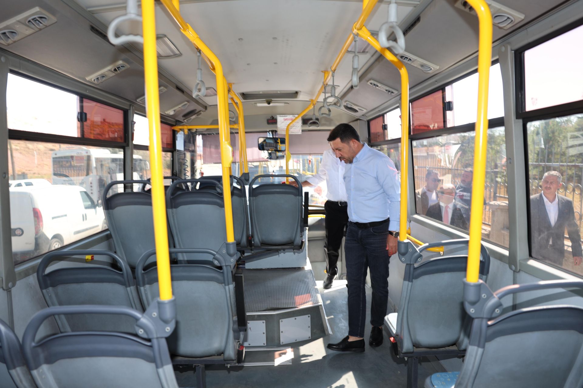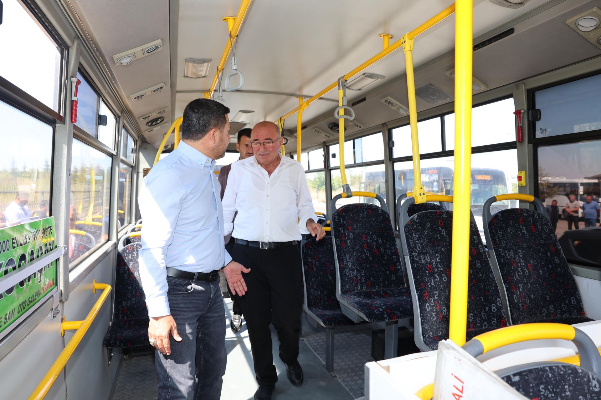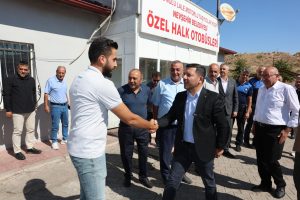 İçerisinde Nevşehir Belediye Başkan Yardımcısı İbrahim Yüzer ile Nevşehir Şoförler Otomobilciler ve Nakliyeciler Esnaf Odası Başkan Cemal Ulukuş’un bulunduğu sohbet sonrası Nevşehir Başkanı Rasim Arı, heyet ile birlikte durakta bulunan özel halk otobüsünü yerinde denetledi.