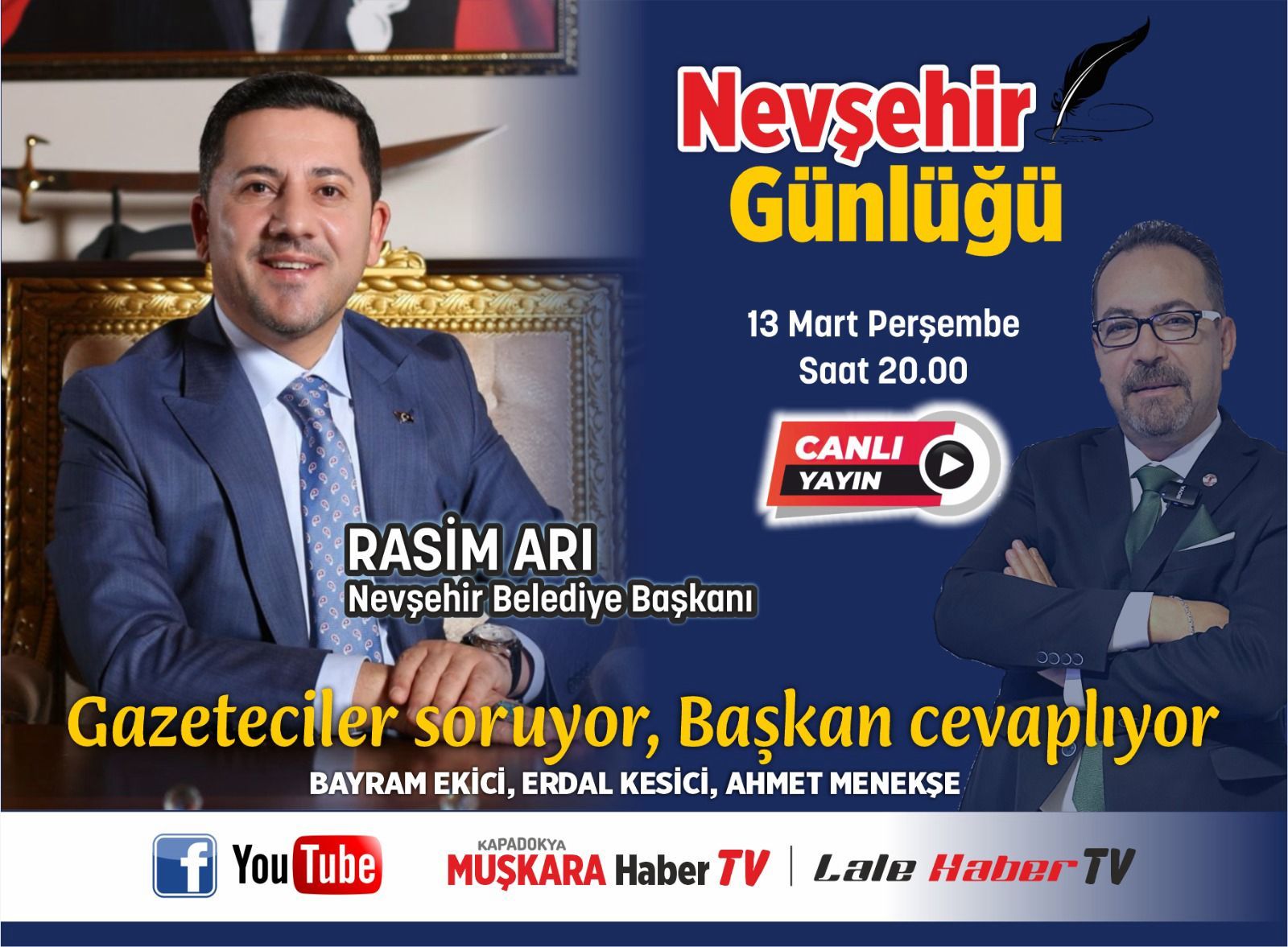 Başkan Rasim Arı’nın konuk olduğu “Nevşehir Günlüğü” programının tamamını Lale Haber Tv ve Muşkara Haber Tv dijital platformlarının youtube kanalları ve facebook sayfaları üzerinden izleyebilirsiniz…