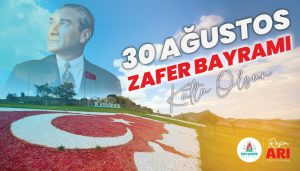 Belediye Başkanı Rasim Arı, 30 Ağustos Zafer Bayramı nedeniyle bir mesaj yayımladı. Büyük Taarruz’un zaferle sonuçlandığı ve ulusal bağımsızlığımızın temellerinin atıldığı 30 Ağustos Zafer Bayramı’nın 102. yıl dönümünü büyük bir coşku ve gururla kutladığımızı belirten Arı, bu anlamlı günün, milletimizin birlik ve beraberlik içinde verdiği mücadelenin, vatan sevgisinin ve kahramanlık destanının ölümsüz bir simgesi olduğunu söyledi.