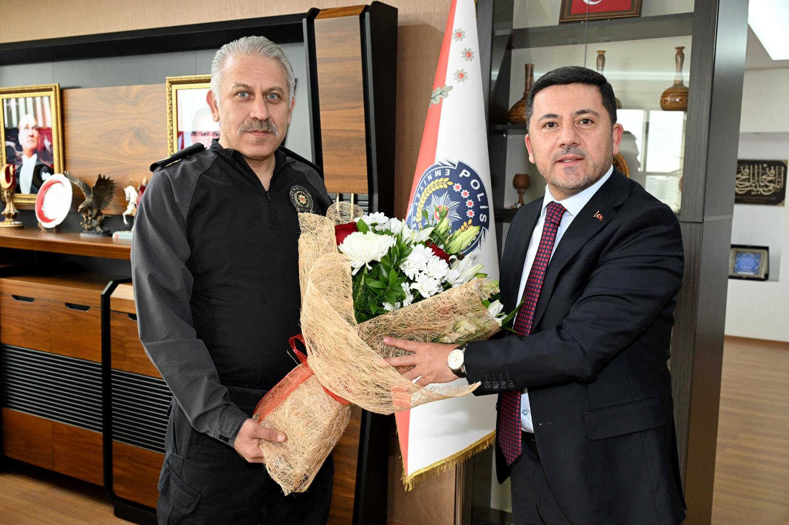 Nevşehir Belediye Başkanı Rasim Arı, Türk Polis Teşkilatının 181. Kuruluş yıldönümü ve Polis Haftası dolayısıyla Nevşehir İl Emniyet Müdürü Serkan Karaman’nı ziyaret etti.