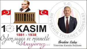 Nevşehir Ticaret Borsası Yönetim Kurulu Başkanı İbrahim Salaş, Cumhuriyetin kurucusu, büyük devlet adamı Gazi Mustafa Kemal Atatürk’ü, ölümünün 84’üncü yıldönümünde saygıyla andıklarını ifade etti.