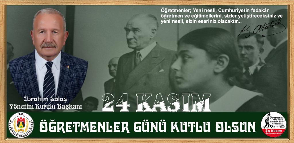 Nevşehir Ticaret Borsası (NTB) Yönetim Kurulu Başkanı İbrahim Salaş, yayınladığı mesajla bütün öğretmenlerin 24 Kasım Öğretmenler Günü’nü kutladı.