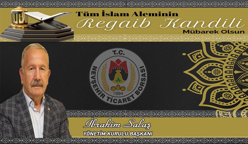 Nevşehir Ticaret Borsası Yönetim Kurulu Başkanı İbrahim Salaş, Regaib kandili ve üç ayların başlangıcı vesilesi ile bir mesaj yayımladı.