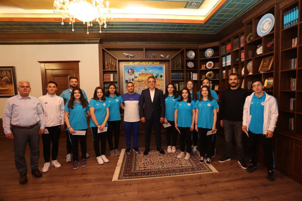 Belediye Başkanı Dr. Mehmet Savran, Nevşehir Belediyesi Gençlik ve Spor Kulübü bünyesinde 2 yıl önce kurulan üst üste aldığı derecelerle 1. Lig’e yükselmeyi başaran Nevşehir Belediyesi Gençlik ve Spor Kulübü Su Topu Takımı sporcuları, Mersin’de katıldığı şampiyonada Avrupa barajını geçerek 23-29 Temmuz 2023 tarihinde Slovakya’da yapılacak olan Avrupa Gençlik Olimpiyatları (EYOF) ve 2024 yılında yapılacak olan U 18 Avrupa Atletizm Şampiyonasına gitmeye hak kazanan İbrahim Gökgöz ve Spor Tırmanış branşında Diyarbakır Küçükler Gençler Boulder Türkiye Şampiyonası ve Diyarbakır Büyükler Boulder Türkiye Şampiyonası’nda Türkiye 1.’liği derecelerini kazanan Mustafa Sacit Sümer’i kabul etti.