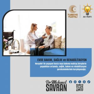 AK Parti Nevşehir Belediye Başkan Adayı Dr. Mehmet Savran, Evde Sağlık, Evde Bakım ve Evde Rehabilitasyon Projesini açıkladı. Savran, “Şimdi Türkiye Yüzyılı. Şimdi bu yüzyıla yakışır işlere imza atma vakti.” dedi.