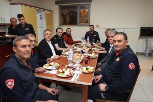 Şehrin güvenliği için 24 saat görev başında olan ve geçtiğimiz aylarda deprem bölgesinde özveriyle görev yapan itfaiyecilere teşekkür eden Savran, itfaiye erleri ile birlikte sahur yaptı.