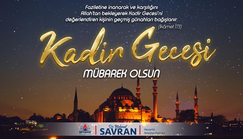 Nevşehir Belediye Başkanı Dr. Mehmet Savran, Kadir Gecesi dolayısıyla bir mesaj yayımlayarak bin aydan daha hayırlı olan mübarek bu gecenin bütün insanlığa ve İslam alemine sağlık, mutluluk ve huzur getirmesini diledi.