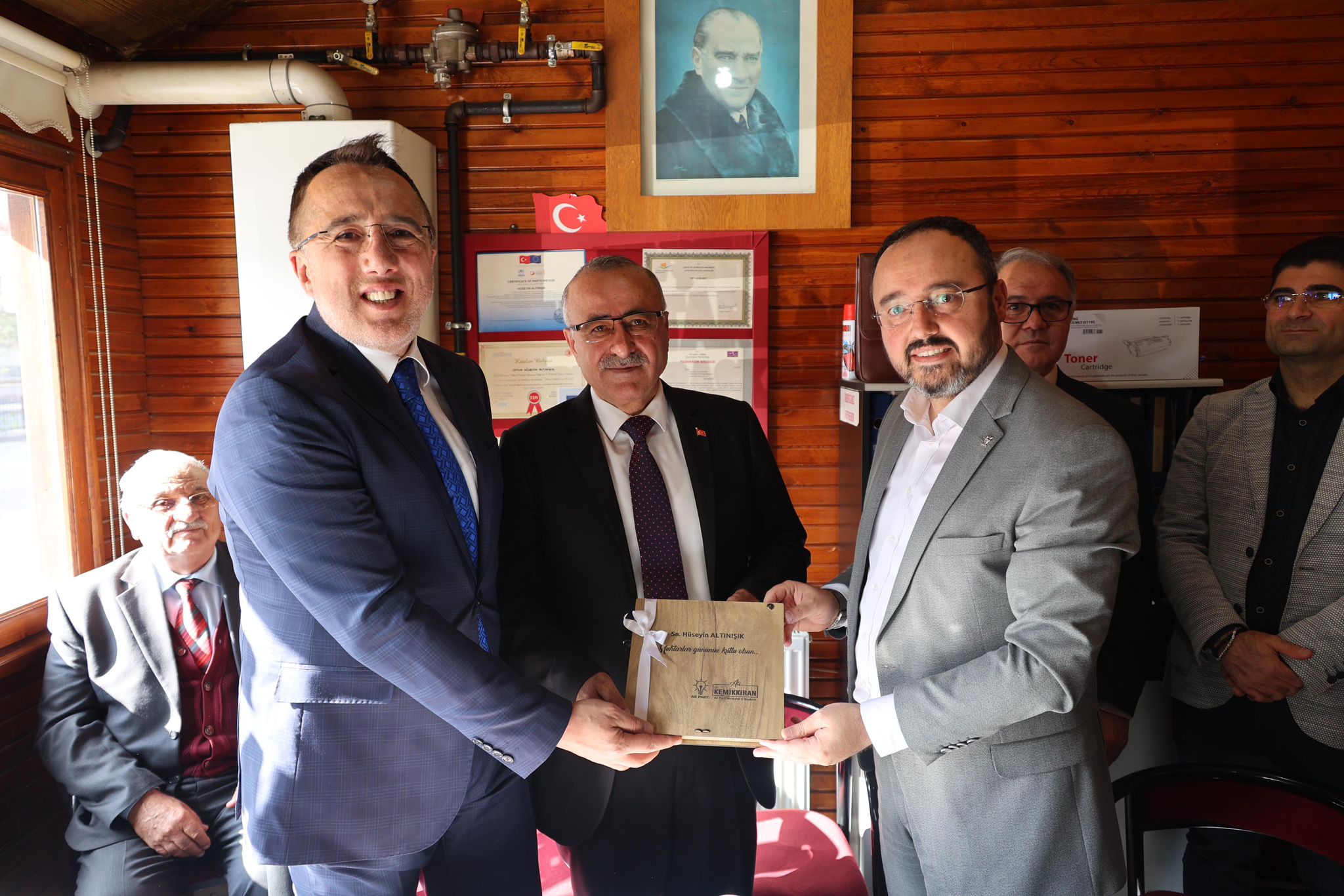 Başkan Savran daha sonra derneği ziyaret eden AK Parti İl Başkanı Ali Kemikkıran, Merkez İlçe Başkanı Murat Özkaya, Kadın Kolları Başkanı Elife Çelebi ve Gençlik Kolları Başkanı Haluk Köybaşı ile birlikte günün anısına muhtarlara hediye takdiminde bulundu.