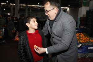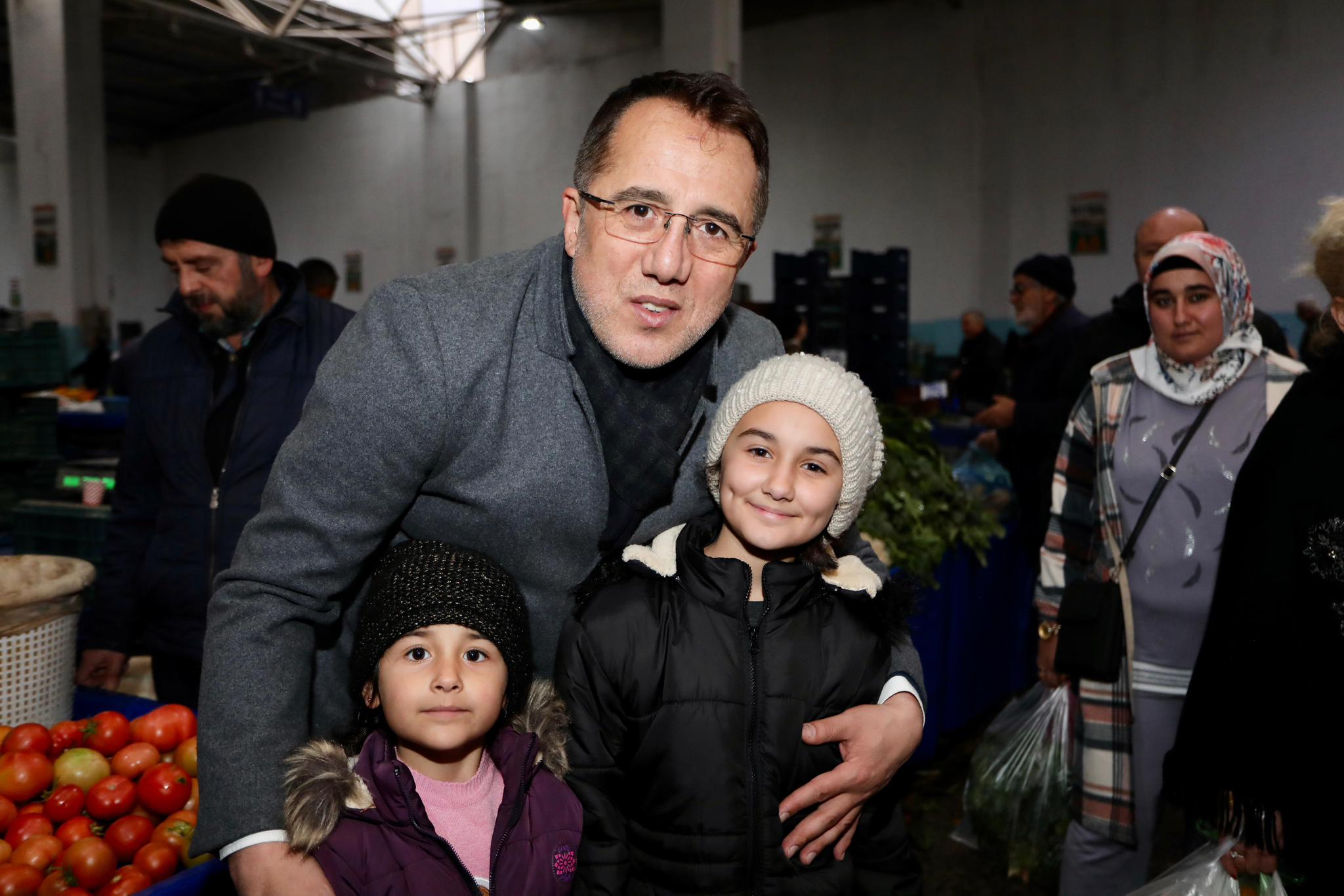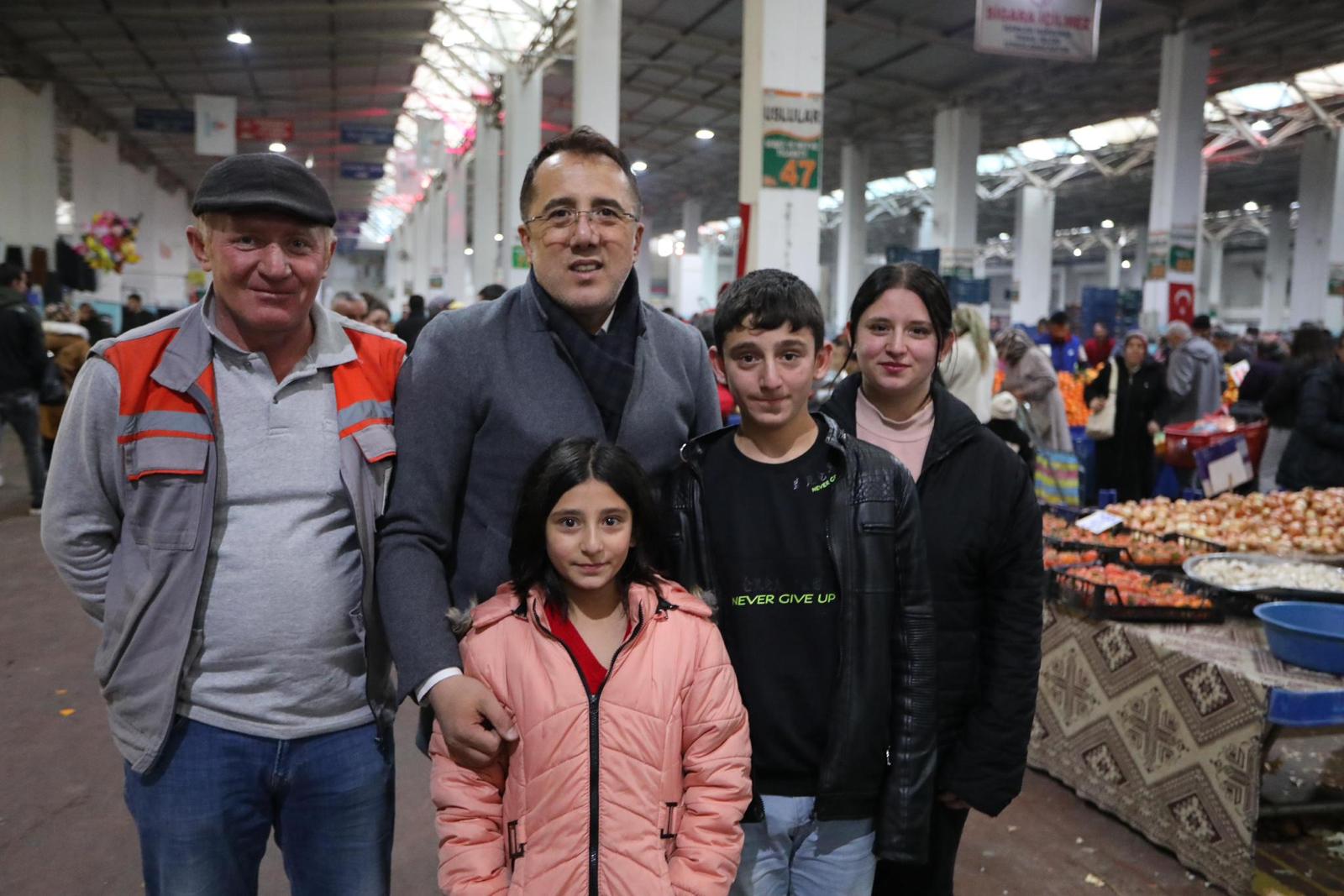 Esnaf ve vatandaşlarla sohbet eden ve talep ile önerileri yerinde dinleyen Savran, pazara aileleri ile birlikte gelen çocuklarla yakından ilgilenmeyi de ihmal etmedi..