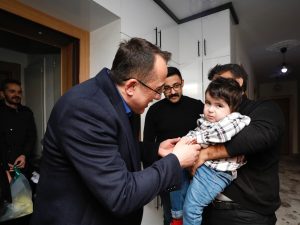 Belediye Başkanı Dr. Mehmet Savran, çocukları SMA hastası olan ve geçtiğimiz yıl başlatılan kampanya ile birlikte yurt dışında SMA ilacını alarak hızla iyileşme sürecine giren Gostak ailesini ziyaret etti. Aileyi, yaşadıkları Bekdik Mahallesi’ndeki evlerinde ziyaret eden Başkan Savran, Yusuf Eren bebeğin babası Yüksel ve annesi Aynur Gostak ile bir süre sohbet ederek tedavi süreci hakkında bilgi aldı.