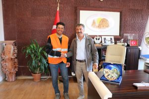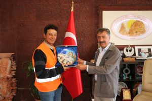 Uçhisar Belediye Başkanı Osman Süslü özverili çalışmasından dolayı belediye personeli Recep Sağır’ı ödüllendirerek; bu duyarlı davranışı için Talha Uğurluel’e teşekkür etti.