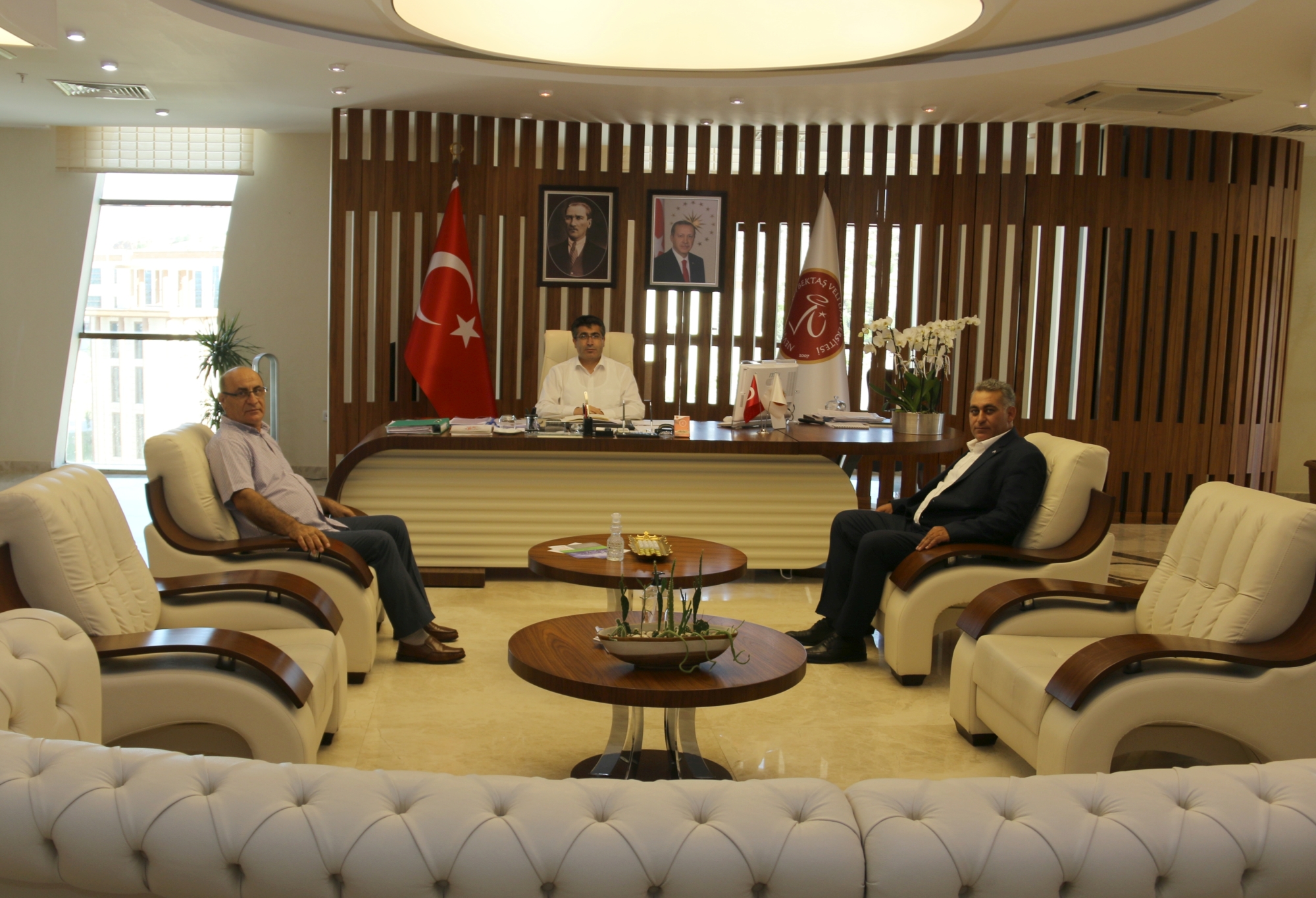 Başkan Ateş ve beraberindekilere ziyaretlerinden duyduğu memnuniyeti dile getirerek teşekkür eden Rektör Aktekin, kendileriyle bir süre görüştü.