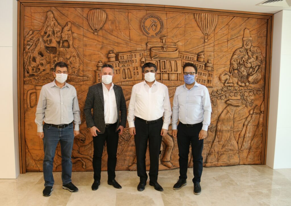 Nevşehir’in Ürgüp İlçesine bağlı Ortahisar Belde Belediye Başkanı Mustafa Ateş, Nevşehir Hacı Bektaş Veli Üniversitesi (NEVÜ) Rektörü Prof. Dr. Semih Aktekin’i ziyaret etti.