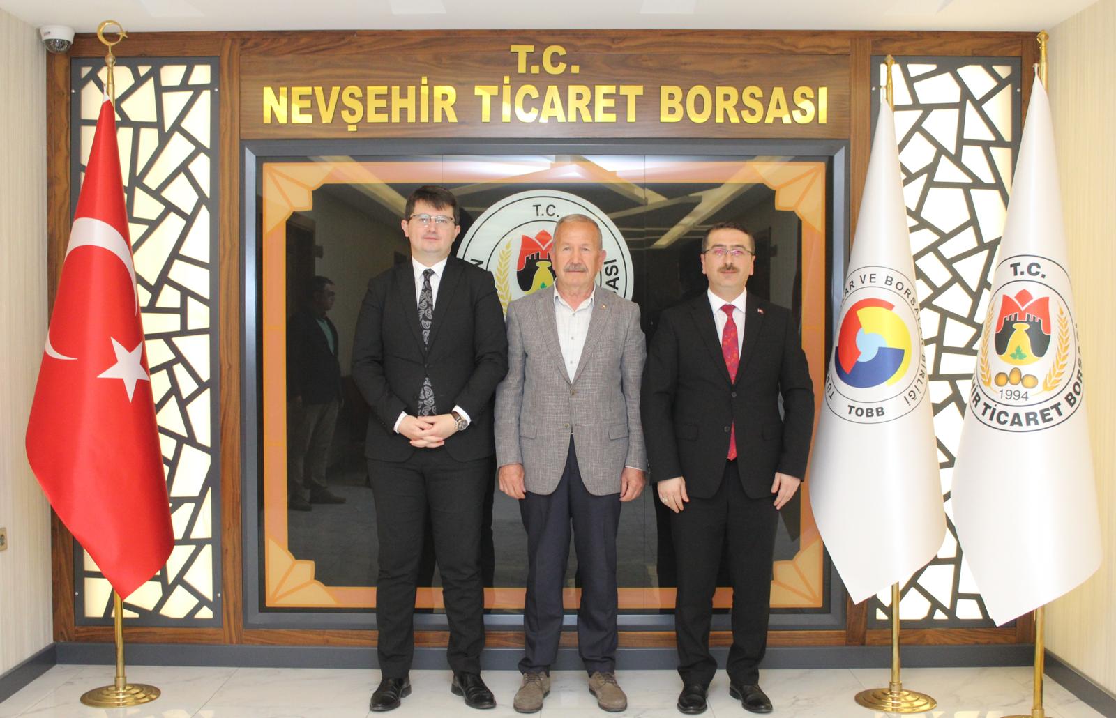 Nevşehir Cumhuriyet Başsavcısı İsmet Çınar ve Adli Yargı İlk Derece Mahkemesi Adalet Komisyonu Başkanı Ali İhsan Tabak, Nevşehir Ticaret Borsası (NTB) Yönetim Kurulu Başkanı İbrahim Salaş’a nezaket ziyaretinde bulundu.