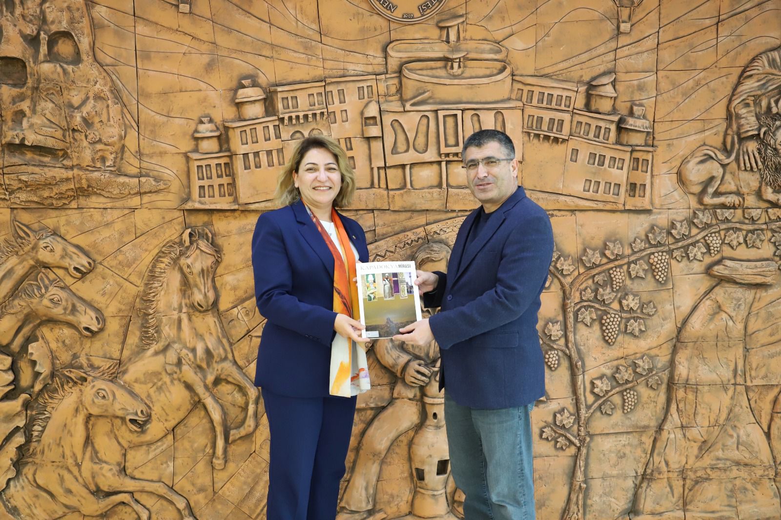 Rektör Prof. Dr. Şirin Karadeniz ve beraberindeki heyet ile bir süre görüşen Rektör Aktekin ziyaret sonunda ayrıca kendilerine NEVÜ İhtisaslaşma Koordinatörlüğü tarafından yayımlanan ‘Kapadokya Mirası Tarihi ve Kültürel Bellek Dergisi’nin ilk sayısını hediye etti.