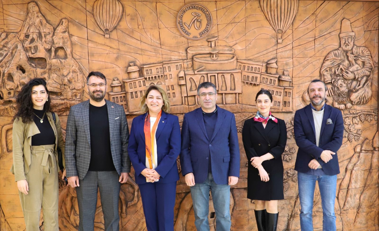 Bahçeşehir Üniversitesi (BAU) Rektörü Prof. Dr. Şirin Karadeniz üniversite yönetimi ve kendilerine eşlik eden Bahçeşehir Koleji Nevşehir Kampüsü Yönetim Kurulu Başkanı Halis Uluer ile birlikte, Nevşehir Hacı Bektaş Veli Üniversitesi (NEVÜ) Rektörü Prof. Dr. Semih Aktekin’i ziyaret etti.