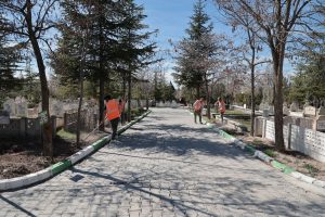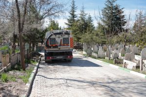Nevşehir Belediyesi ekipleri, Ramazan Bayramı öncesi Taşlıbel ve Kaldırım Mezarlıklarında temizlik ve bakım çalışması gerçekleştirdi.