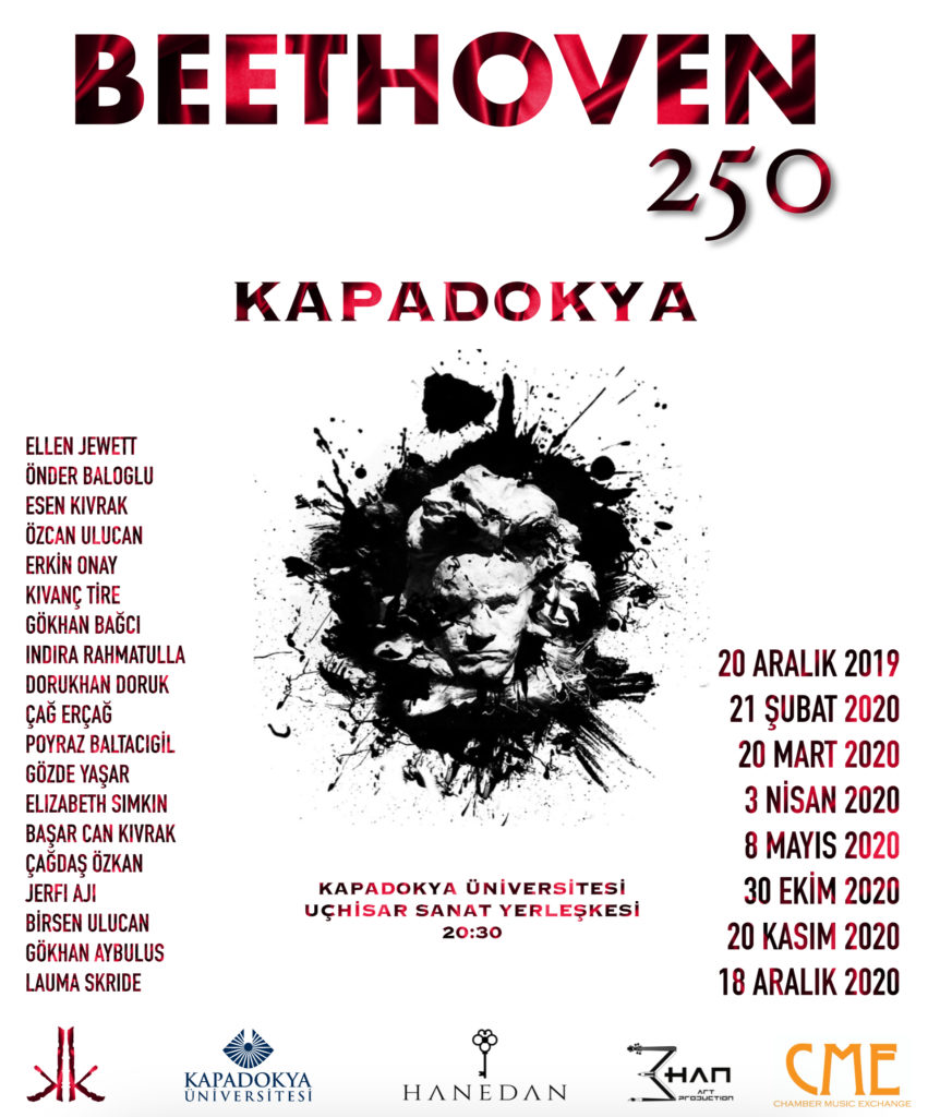 Beethoven 250 konser dizisi, Kapadokya Üniversitesi, Klasik Keyifler Müzik Derneği, Hanedan Cappadocia Suite, Chamber Music Exchange ve Üçhan Sanat Prodüksiyon’un değerli iş birlikleri gerçekleşiyor.