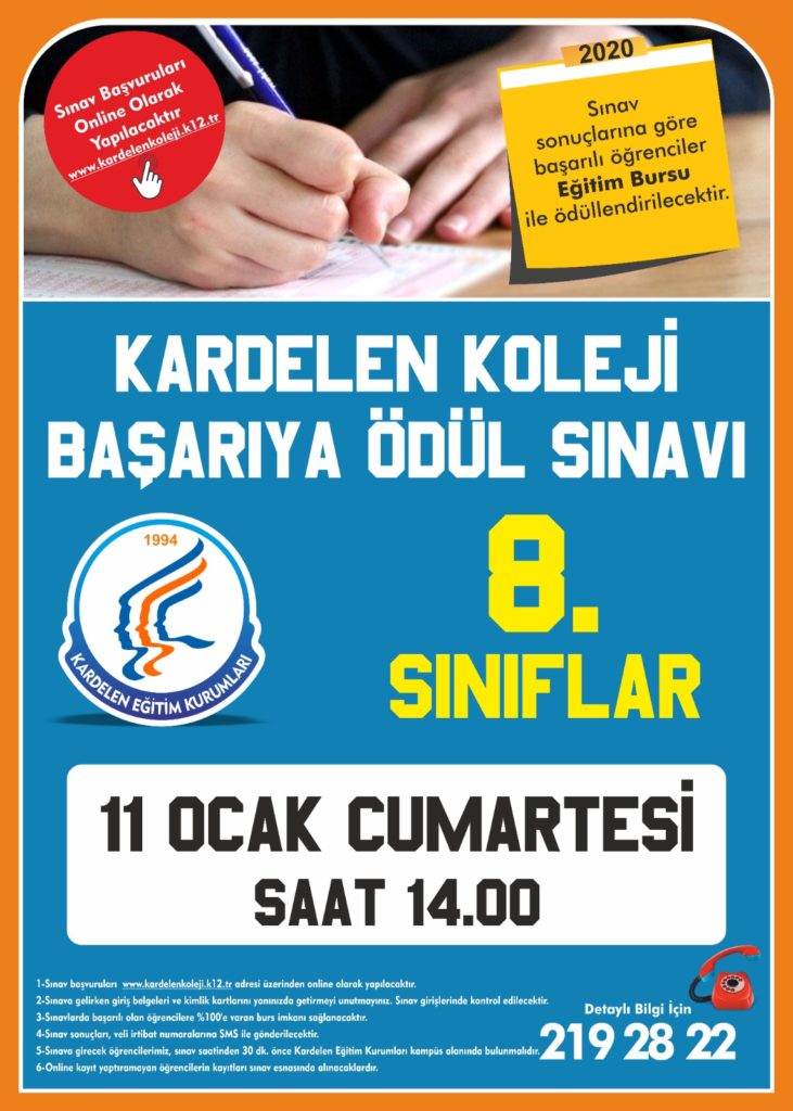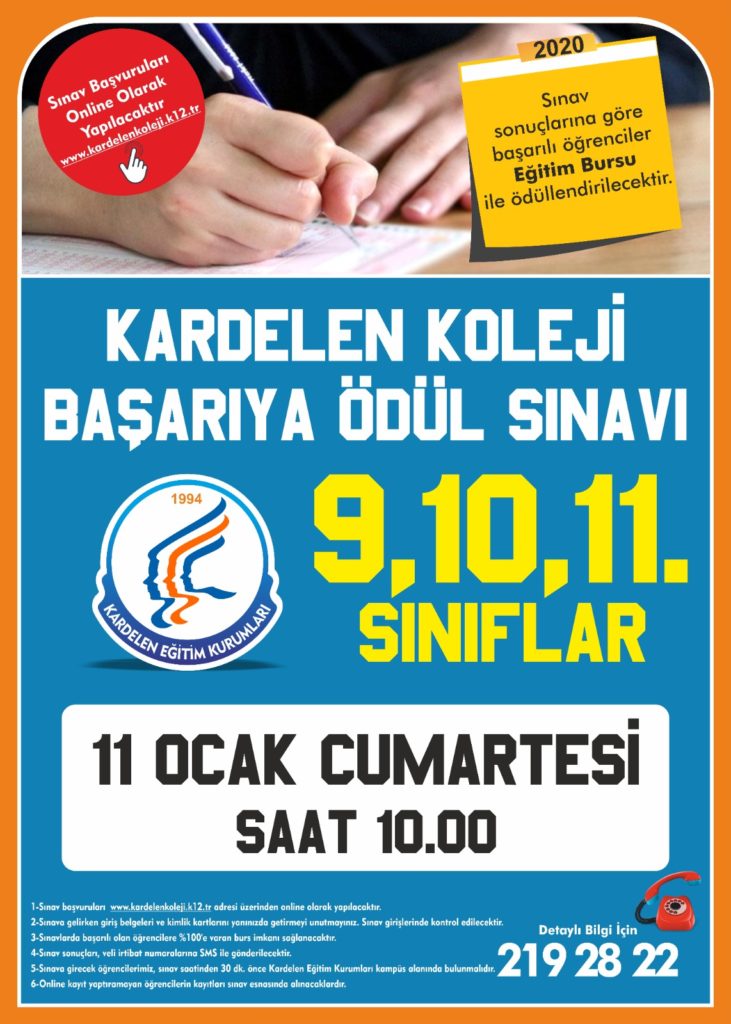 Sınav başvuruları online olarak http://kardelenkoleji.k12.tr/  adresinden yapılacak.