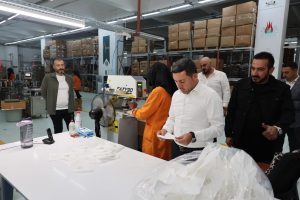 Başkan Arı, saha incelemelerinin ardından Nevşehir Belediyesi Turizm ve Spor A.Ş bünyesinde faaliyetlerini sürdüren ve turizm sektöründeki konaklama tesisleri için terlik, şampuan, sabun ve saç kremi gibi buklet ürünlerin üretiminin gerçekleştirildiği Nissa Buklet Fabrikası’nı ziyaret etti. Burada ilk olarak şirket yöneticilerinden bilgiler alan Arı daha sonra fabrika yöneticileri ve çalışanlarla bir toplantı yaptı.