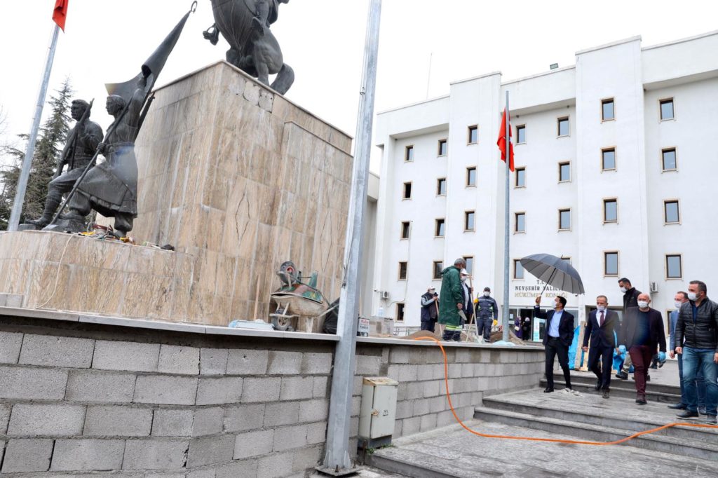 Nevşehir Belediye Başkanı Rasim Arı, Hükümet Konağı önündeki Atatürk Anıtı çevresinde gerçekleştirilen bakım ve yenileme çalışmalarında incelemelerde bulundu.