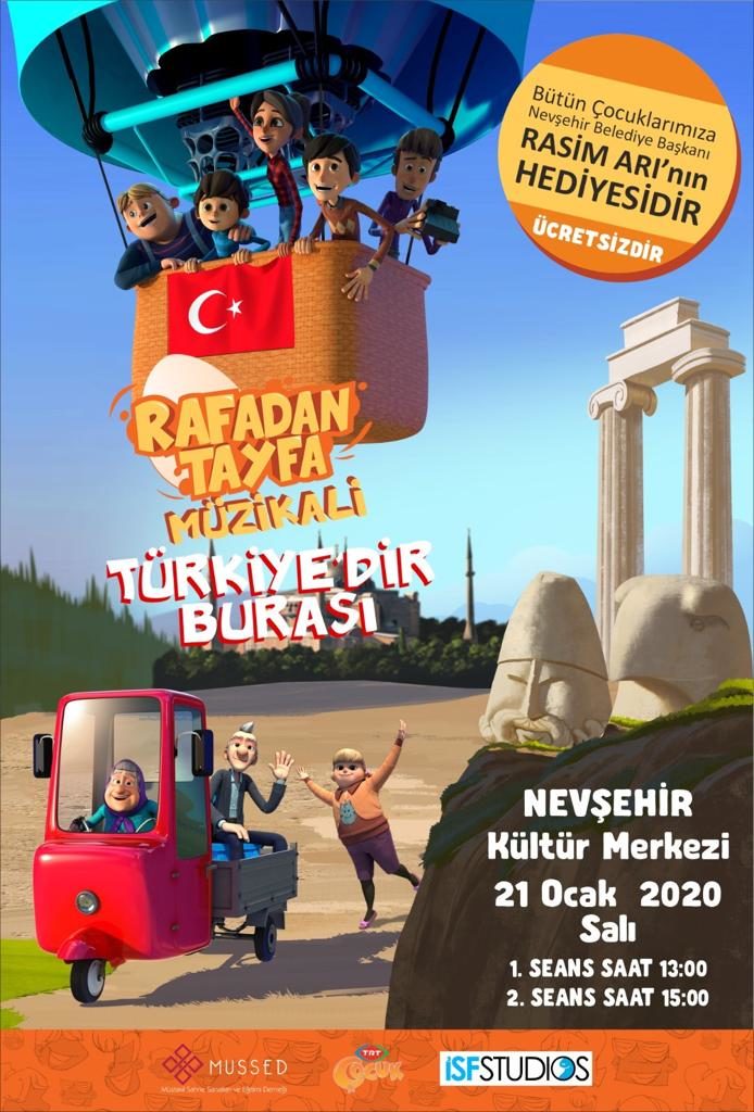 TRT Çocuk kanalında yayınlanan Rafadan Tayfa çizgi filminden uyarlanan “Rafadan Tayfa-Türkiye’dir Burası Müzikali” Belediye Başkanı Rasim Arı’nın yarıyıl tatili hediyesi olarak Nevşehir’de çocuklarla buluşuyor.