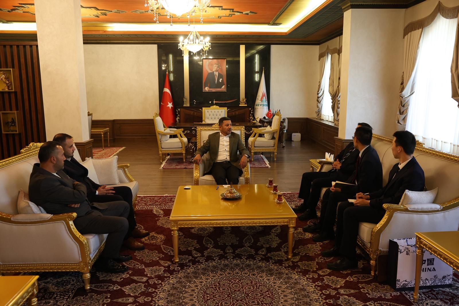 Çin Büyükelçiliği’nde görevli dört kişiden oluşan bir heyet Nevşehir Belediye Başkanı Rasim Arı’yı makamında ziyaret etti. Çin Büyükelçiliği Emniyet Müşaviri Zhang Li, Emniyet Ataşesi Ye Yifan, Ticaret Ataşesi Zhang Ying ve Kültür Ataşesi Zhang Kangbin’den oluşan Çinli heyeti makamında ağırlayan Başkan Rasim Arı, misafirleriyle tek tek ilgilenerek sohbet etti.
