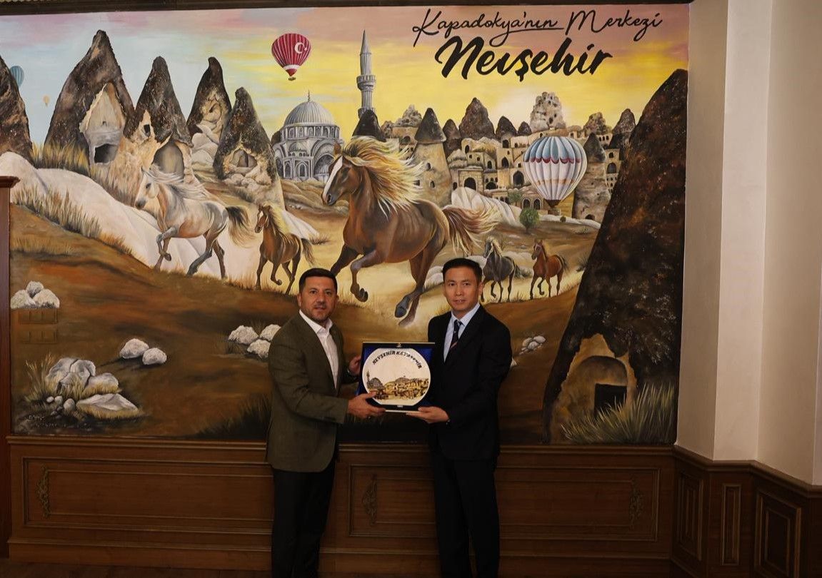 Ziyarette; Belediye Başkanı Rasim Arı heyete, Kapadokya’nın Merkezi Nevşehir hakkında genel bilgiler vererek sohbet etti.