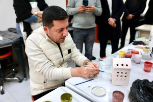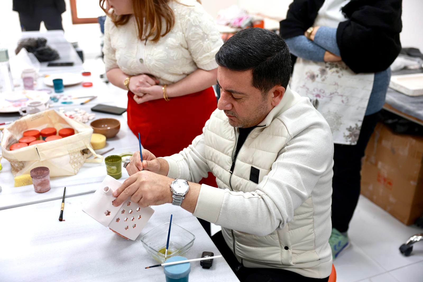 Nevşehir Belediye Başkanı Rasim Arı, Kadın Çalışmaları Eğitim Merkezi (KAÇEM) tarafından Seramik Atölyesi’nde tamamen elle biçimlendirme üzeri dekorlu sırlı seramik mumluk yapım etkinliklerine katıldı.