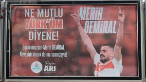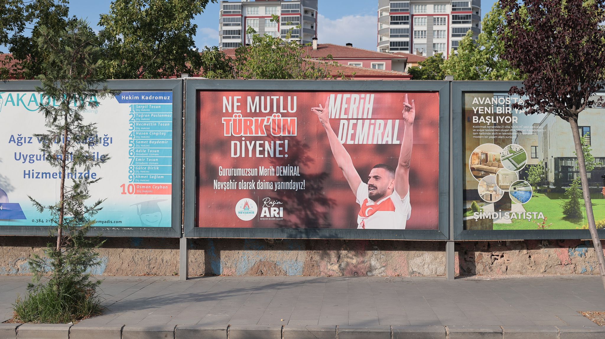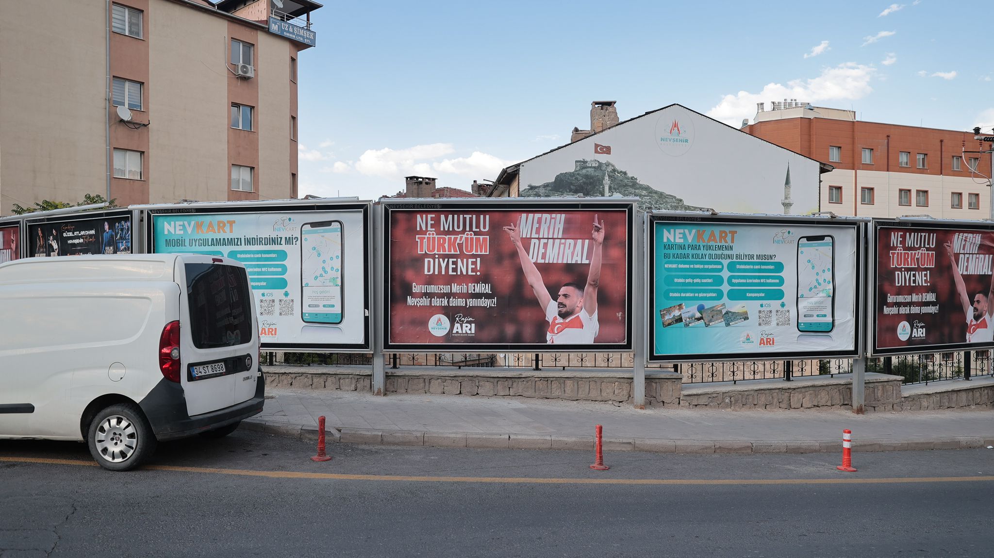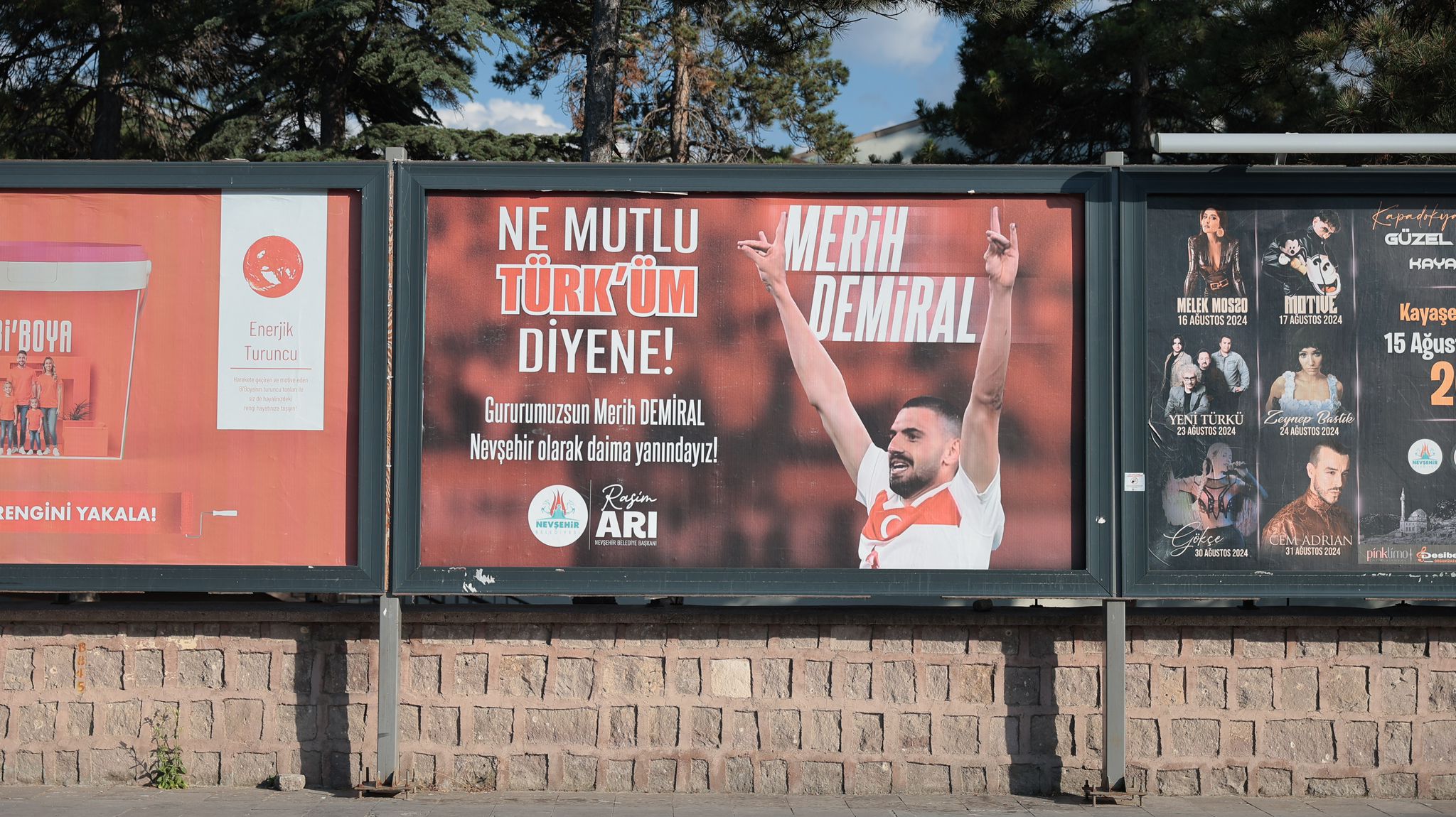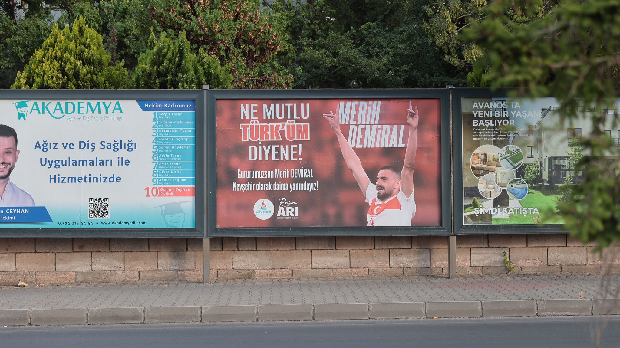 Nevşehir Belediye Başkanı Rasim Arı, bozkurt işareti yaptığı gerekçesiyle 2 maç men cezası alan Merih Demiral’a şehrin dört bir tarafına astırdığı billboardlarla destek verdi.