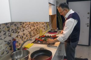 Savran ve Biltekin evde bir süre öğrencilerle sohbet ettikten sonra birlikte mutfağa geçerek yemek yapmaya koyuldu.