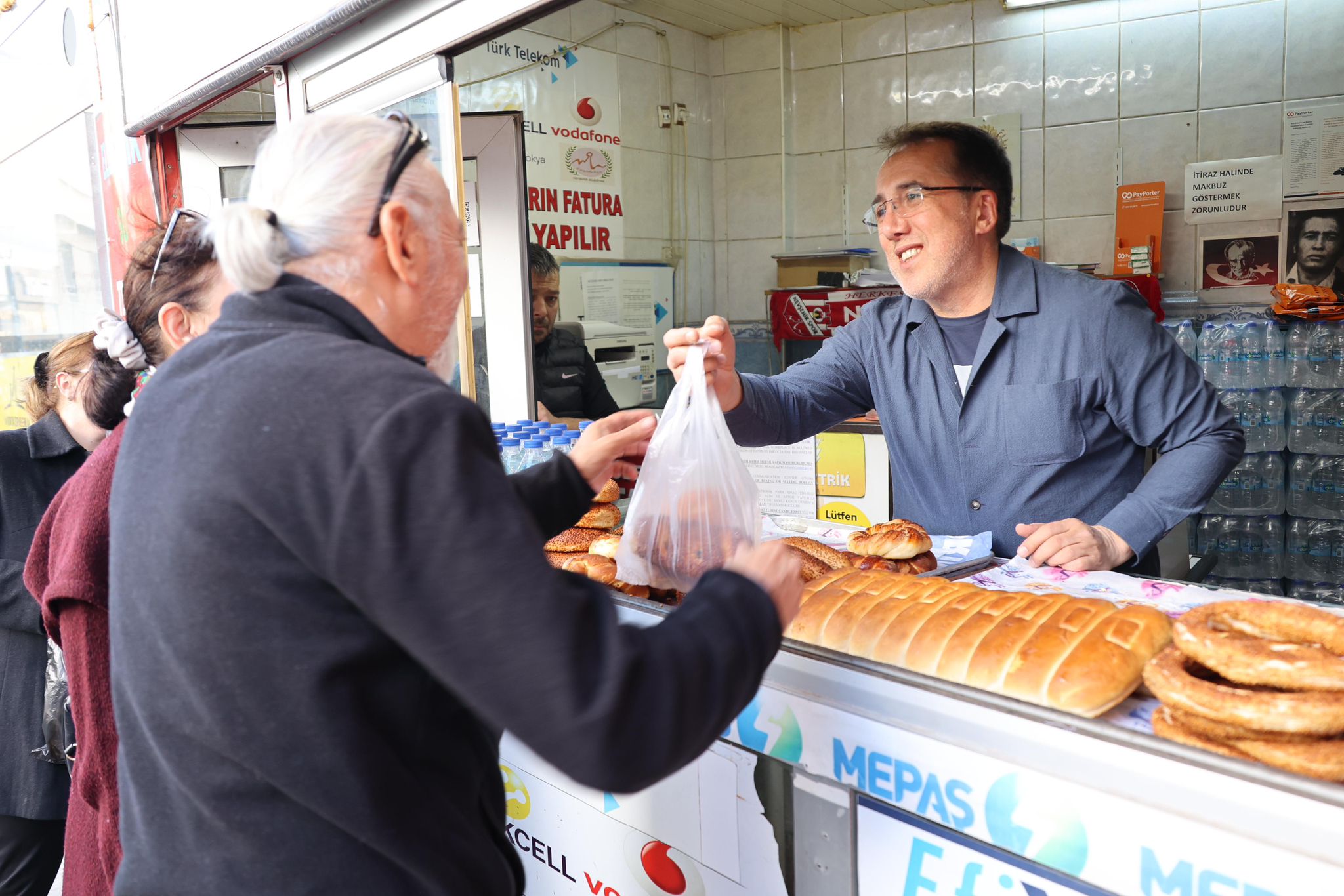 Atatürk Bulvarı üzerindeki bir ekmek büfesinde tezgâha geçerek vatandaşlara simit ve poğaça ikramında da bulunan Savran, gençlerle ve esnaflarla fotoğraf çektirdi.