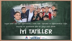 Belediye Başkanı Dr. Mehmet Savran, yarıyıl tatili dolayısıyla mesaj yayınlayarak öğrencilerin karne heyecanını paylaştı. Savran, iyi tatiller dilediği tüm öğrencilere “Tatili iyi değerlendirin.” tavsiyesinde bulundu. Savran şöyle devam etti;