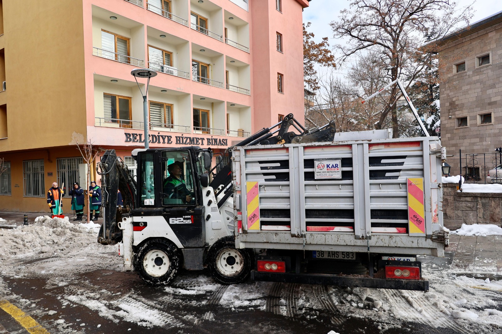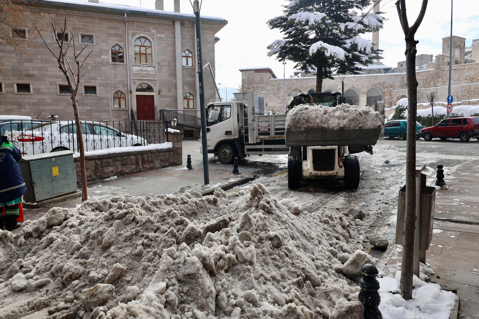 Nevşehir’de etkili olan kar yağışı sonrası önlemlerini artıran Nevşehir Belediyesi, karla mücadelede yoğun mesai harcıyor.