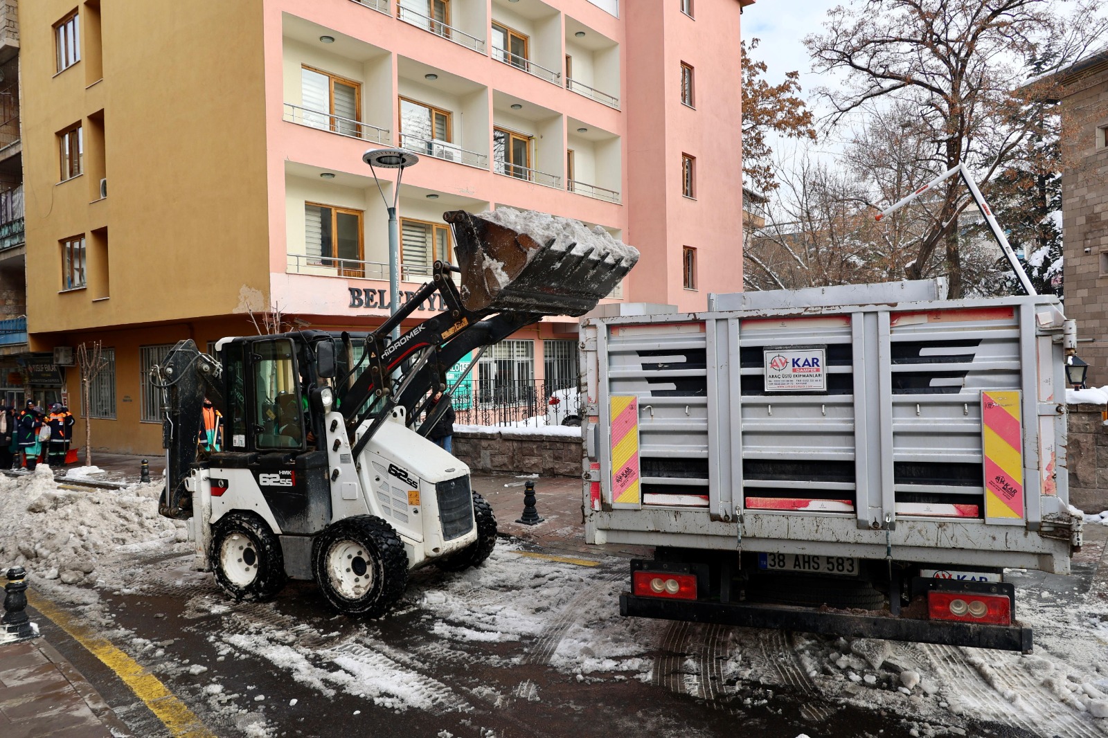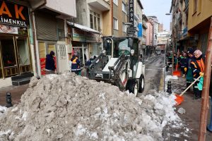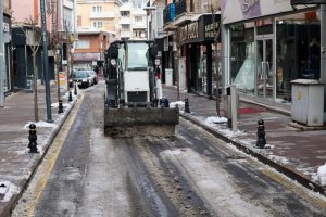 Nevşehir Belediyesi Temizlik İşleri Müdürlüğü tarafından Belediye Caddesinde kar temizliği yapıldı.