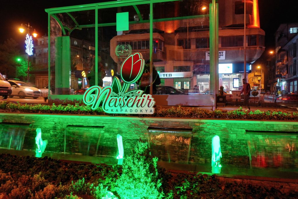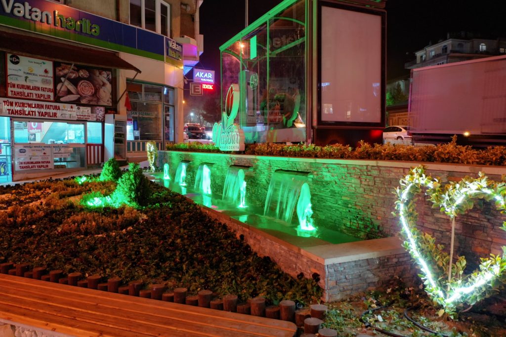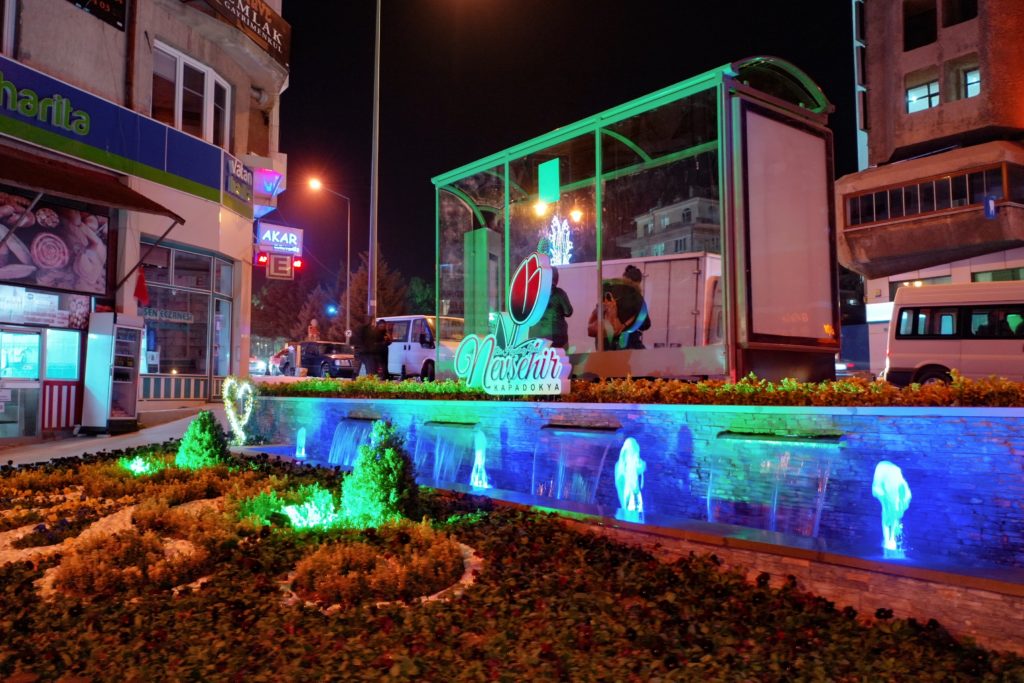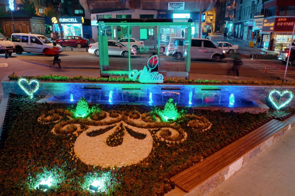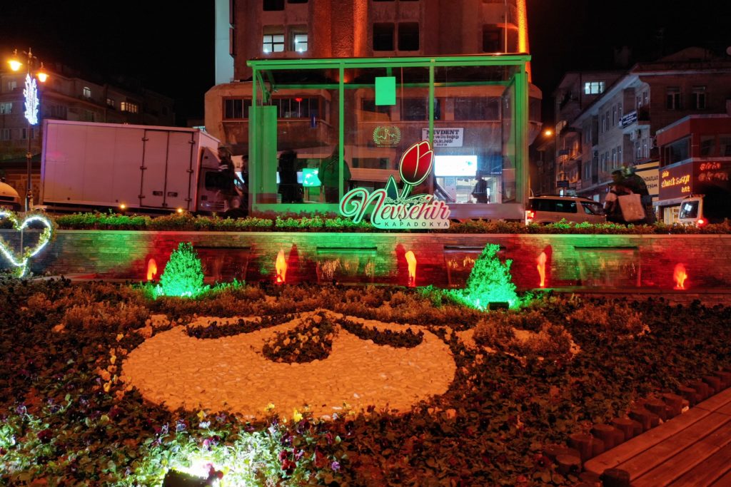 Süs havuzları kurulan bu alan, yüzlerce mevsim çiçekleriyle süslenirken yapılan ışıklandırma çalışması ile birlikte de Nevşehirlilere adeta görsel bir şölen sundu.