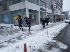 Temizlik İşleri Müdürlüğü ve Park ve Bahçeler Müdürlüğü ekipleri ise sabah erken saatlerden itibaren yaya kaldırımlarında kar temizliği çalışması gerçekleştirdi.