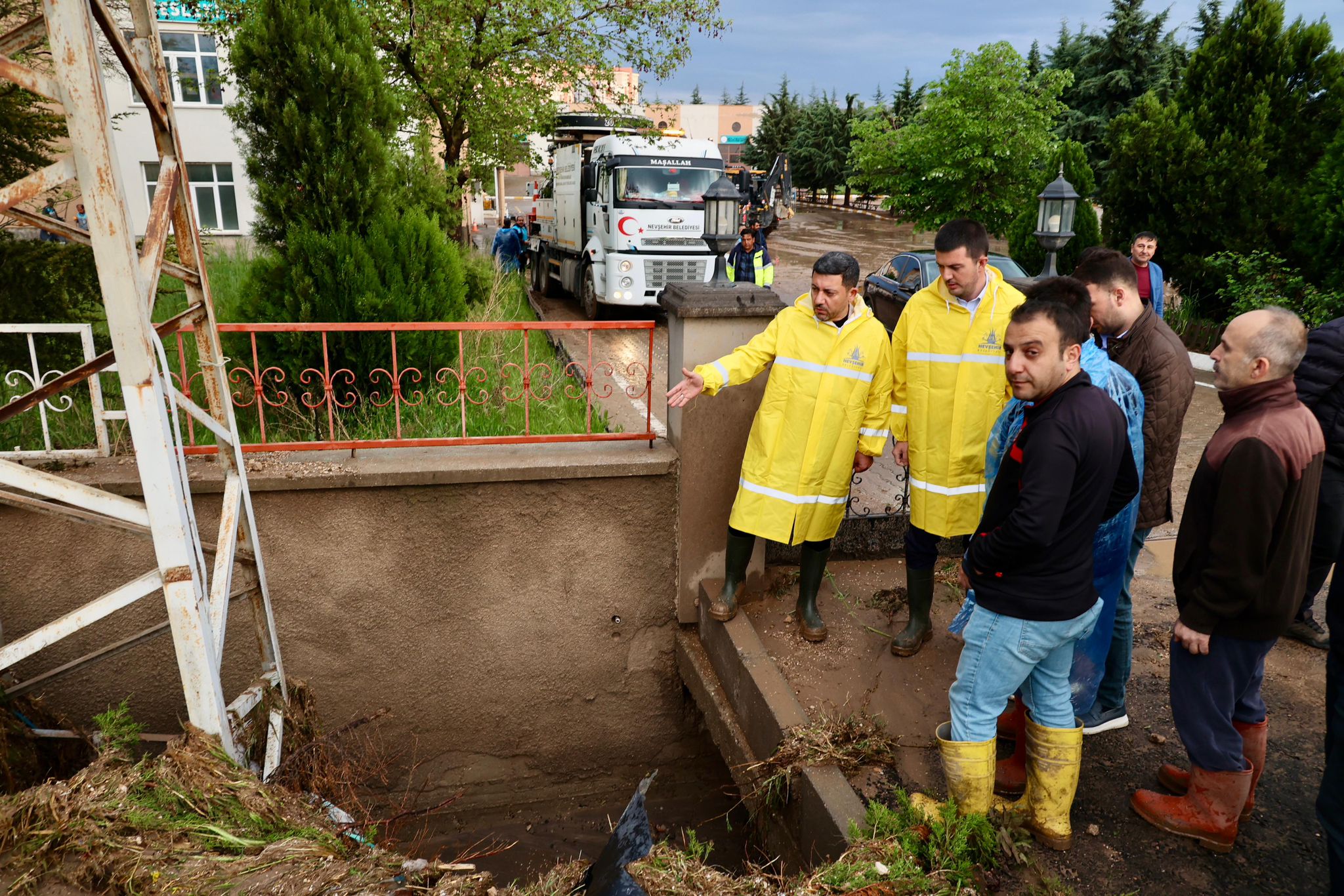 Belediye Başkanı Rasim Arı da gün boyu olumsuzlukların yaşandığı bölgelerde incelemelerde bulunarak ekiplerin çalışmalarını yerinde takip etti.