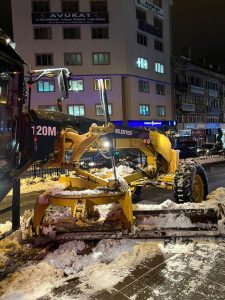 Çok sayıda iş makinesi ile gerçekleştirilen çalışmalarda yaya kaldırımlarını da temizleyen belediye ekipleri ayrıca buzlanma tehlikesi oluşan yollarda tuzlama çalışması gerçekleştirdi.