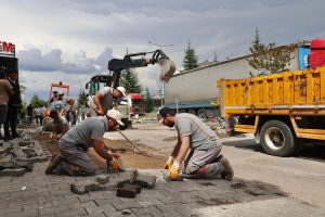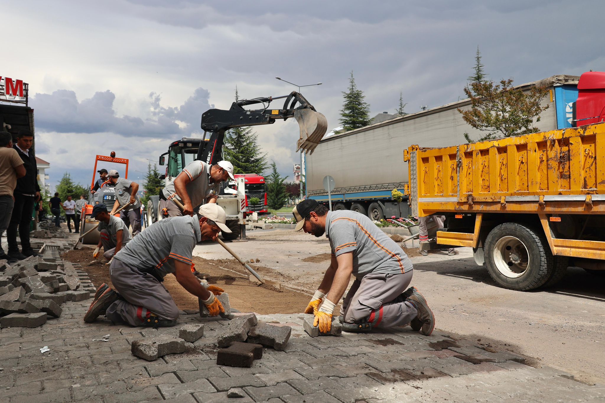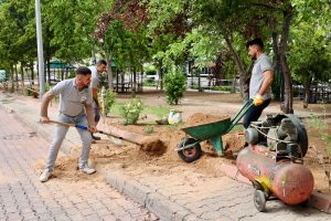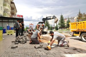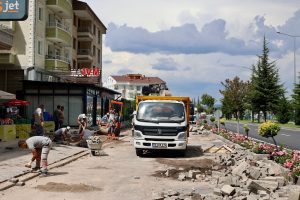 Nevşehir’de son günlerde etkili olan sağanak yağışlar sonrasında hasar gören yol, yaya kaldırımı ve parklarda onarım ve yenileme çalışmaları sürüyor.