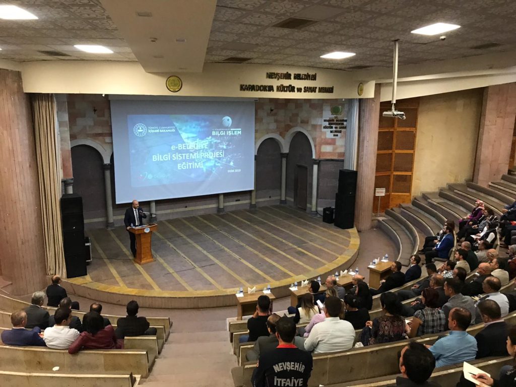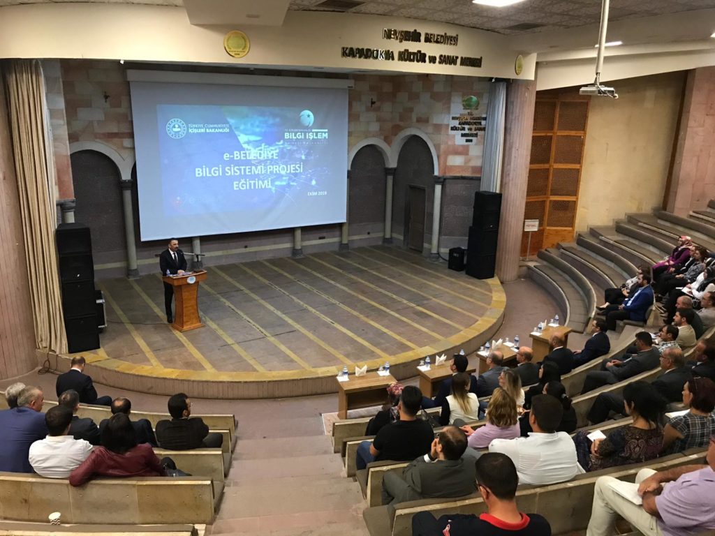 İçişleri Bakanlığı tarafından yürütülen ve belediyelerin kullandığı Elektronik Belge Yönetim Sistemi, Muhasebe Sistemleri gibi yazılımları tek bir çatı altında toplayan e-Belediye projesi kapsamında Nevşehir Belediyesi personeline yönelik eğitimler veriliyor.
