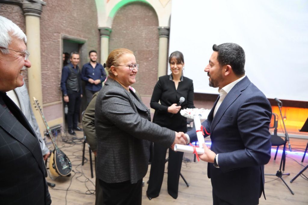 Arı, daha sonra KAPEM ve Müzik Eğitim Merkezi’nin en genç ve en yaşlı kursiyerlerine sertifikalarını ünlü sanatçı Volkan Severcan ile birlikte vererek onları tebrik etti.