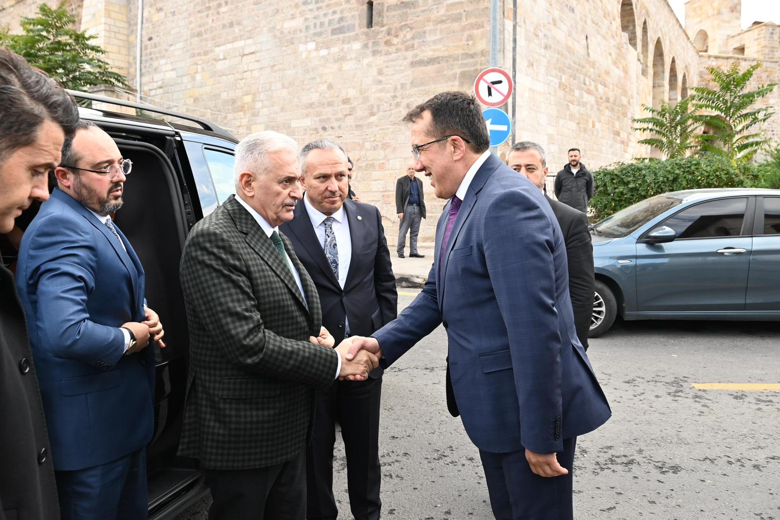 Başkanlık binası girişinde Belediye Başkanı Dr. Mehmet Savran ve başkan yardımcıları tarafından karşılanan Yıldırım, bir süre Belediye Başkanı Savran ile istişarelerde bulundu.