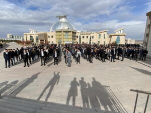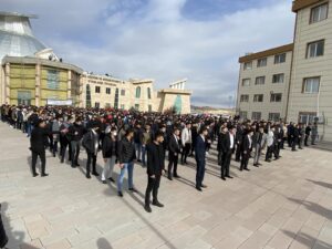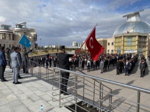 Nevşehir’in en büyük teşkilatı Ülkü Ocakları, üniversitede düzenlediği bir programda adeta gövde gösteri yaptı. Binin üzerinde genç kampüs alanında yürüdü.