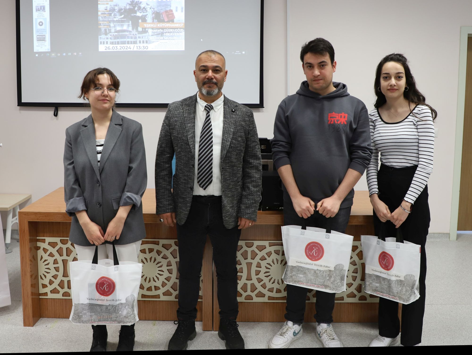 Hoca Ahmed Yesevi Kütüphanesi Konferans Salonu’nda düzenlenen etkinliğe; NEVÜ Rektör Yardımcısı Prof. Dr. Şahlan Öztürk, Kütüphane ve Dokümantasyon Daire Başkanı Gökhan Onmuş, üniversitenin akademik ve idari personeli ile öğrenciler katıldı.