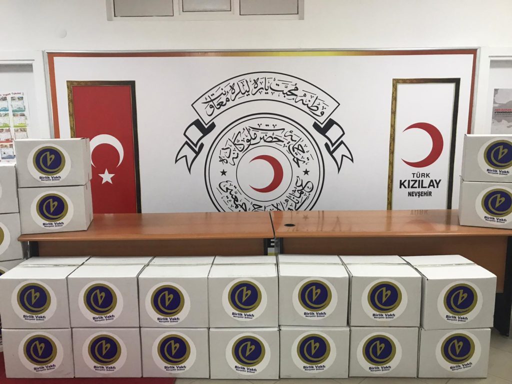 Söz konusu yardım kolilerini Birlik Vakfı Nevşehir Şube Başkanı Gürbüz Dinç ve beraberindeki yönetim kurulu üyeleri Kızılay Nevşehir Şube Başkanlığına teslim ettiler.