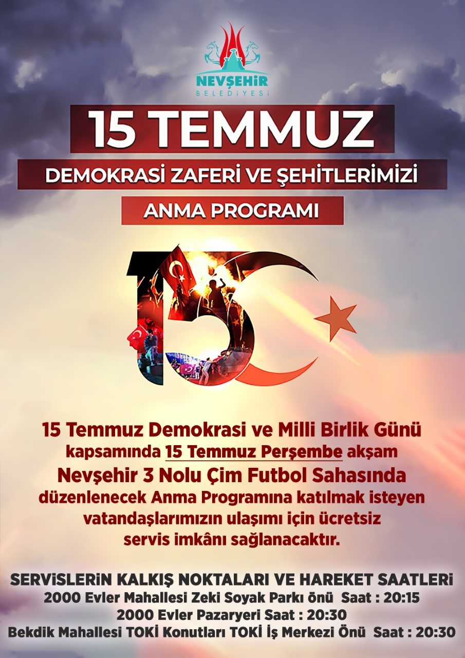 15 Temmuz Demokrasi Zaferi Ve Şehitlerimizi Anma Programı için mahallelerden servis kaldırılacak