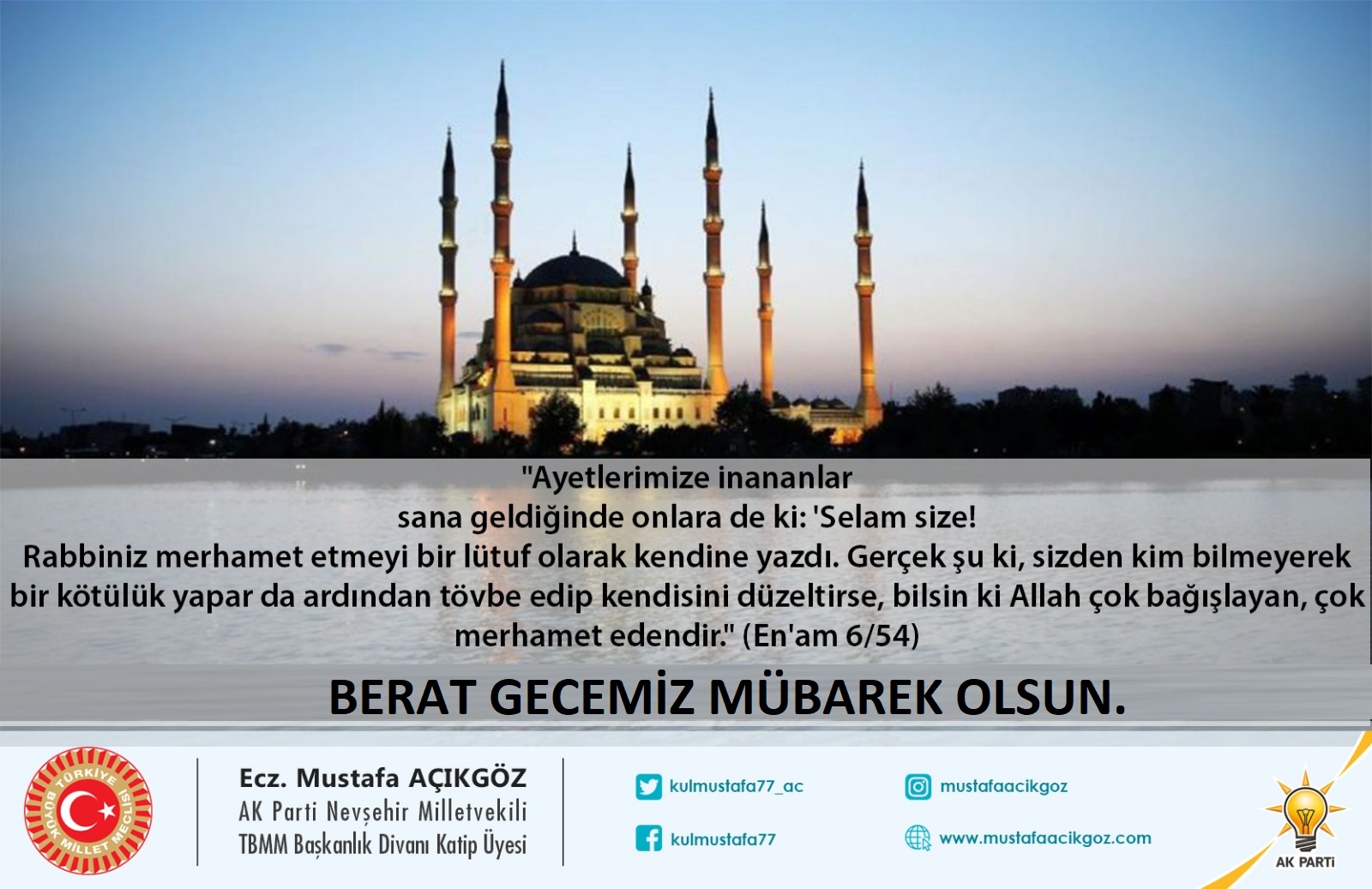 Açıkgöz “Berat Gecemiz Mübarek Olsun”